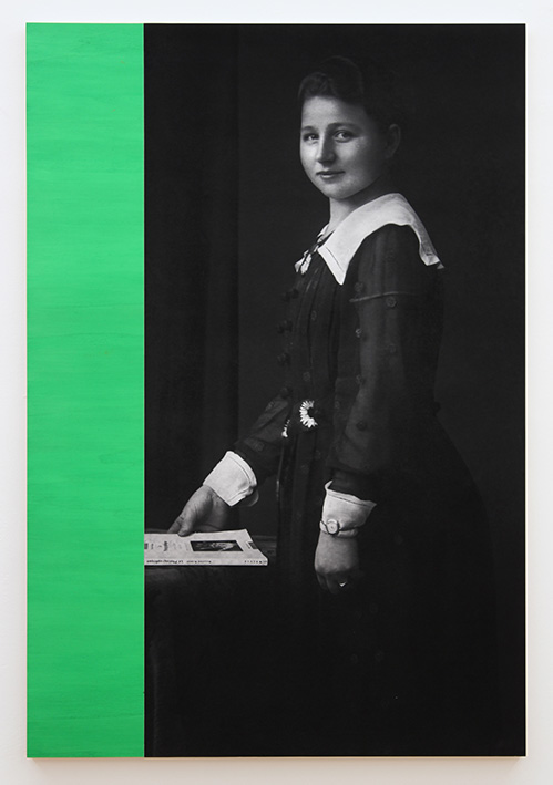 Isabelle Le Minh, L'autre de l'art (Rosalind Krauss), 2013, aus der Serie: Les Liseuses, Digitaldruck, Pigmenttintenstrahldruck auf Baumwollpapier, Acrylfarbe auf Holz, Blatt: 120 x 81,5 cm