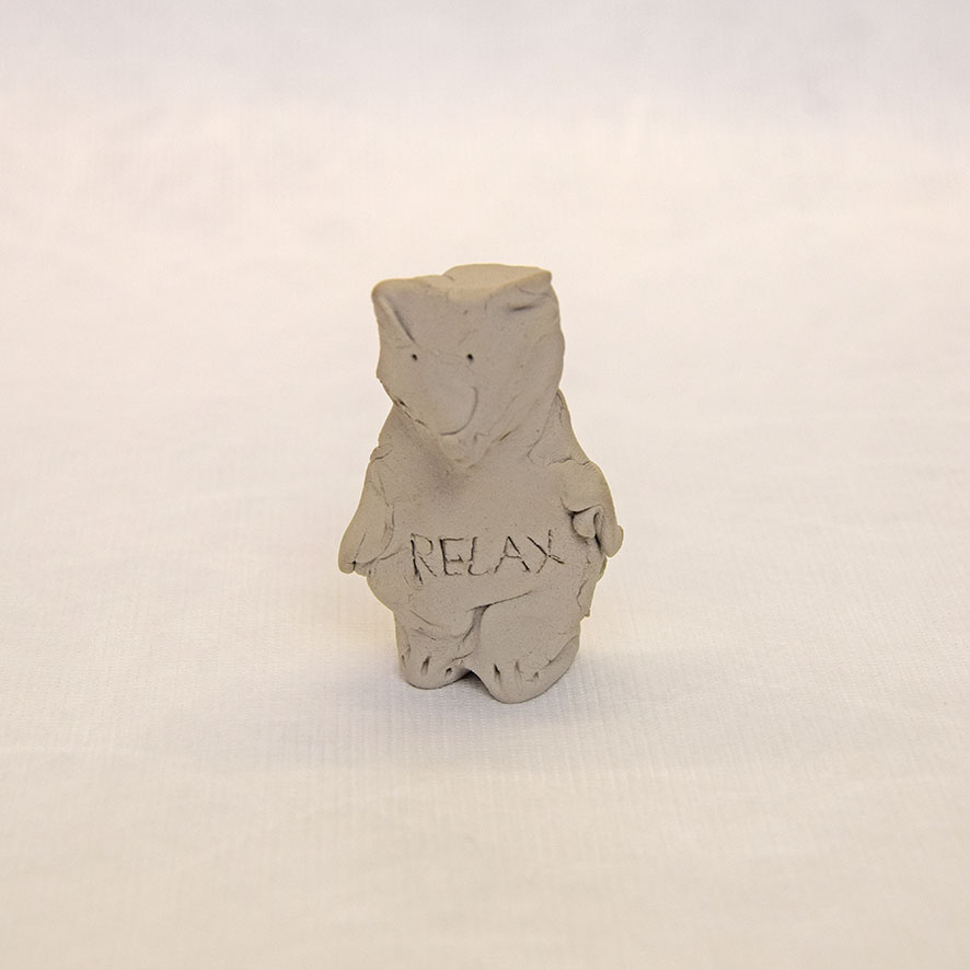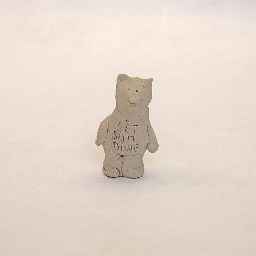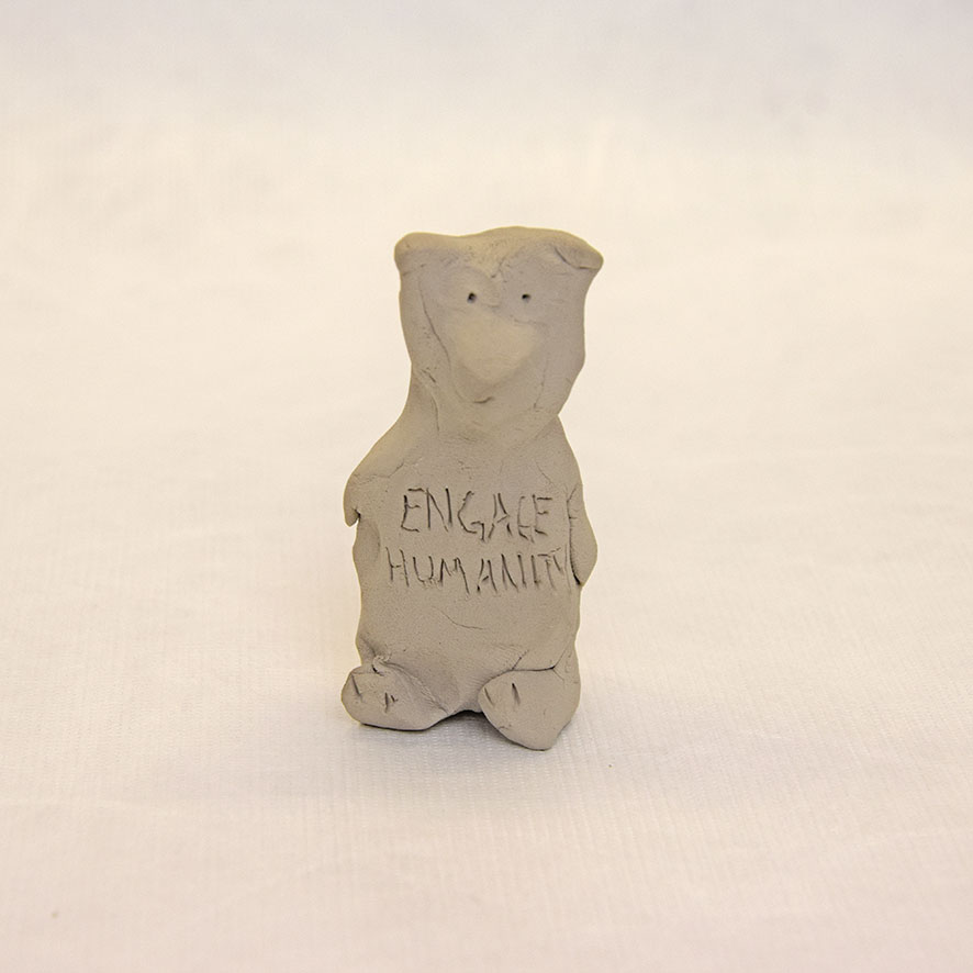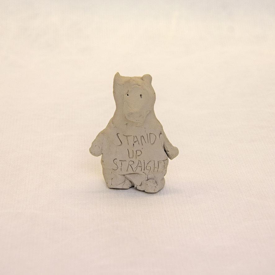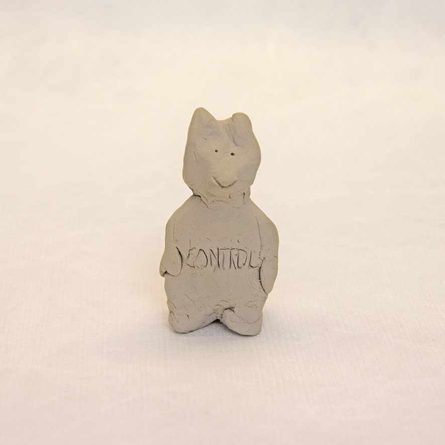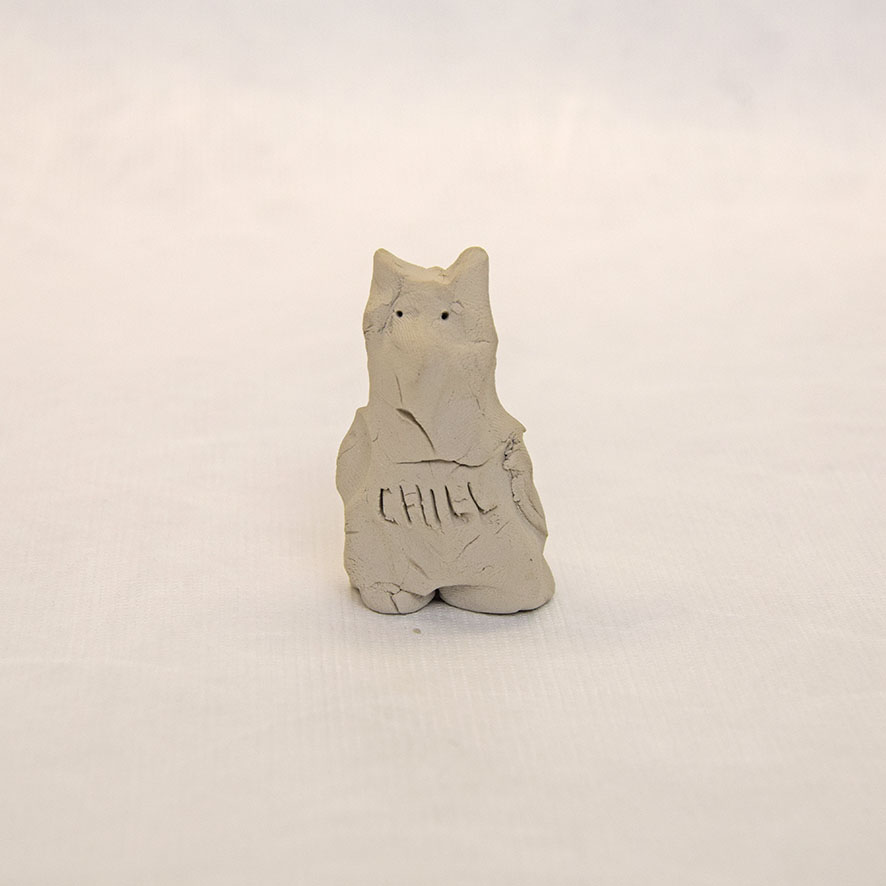Timo Hinze, Die Kollegen (11), 2017, aus der Serie: Die Kollegen, geformter Ton, Einritzung, Objekt: 5 x 3 x 2 cm
