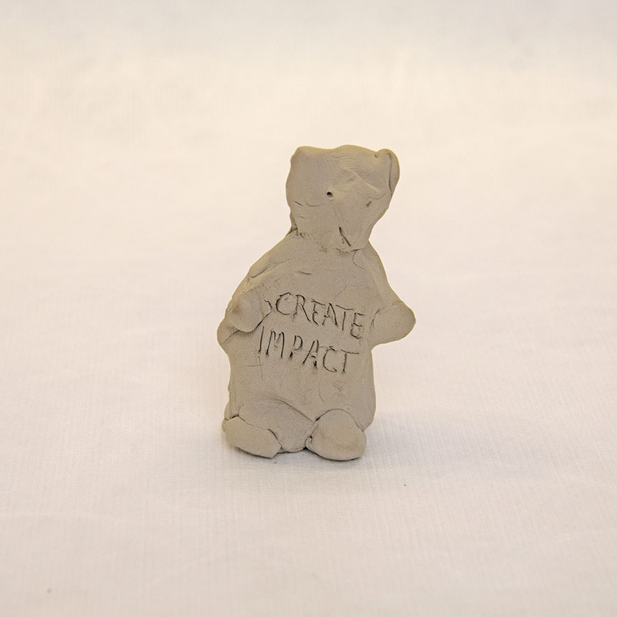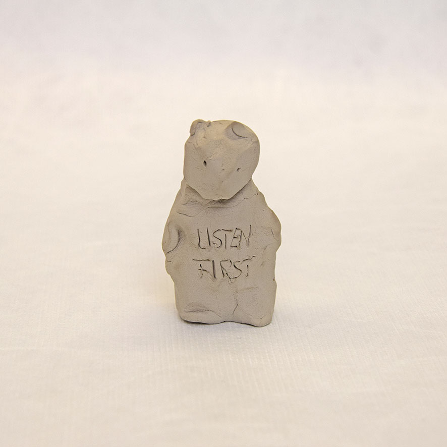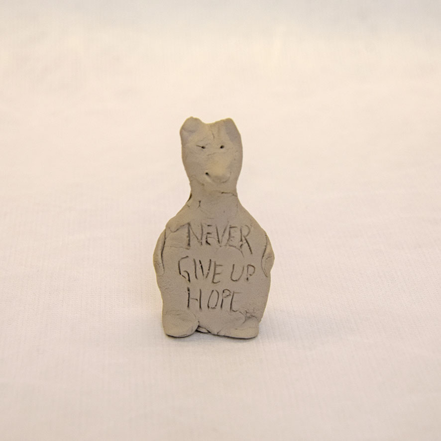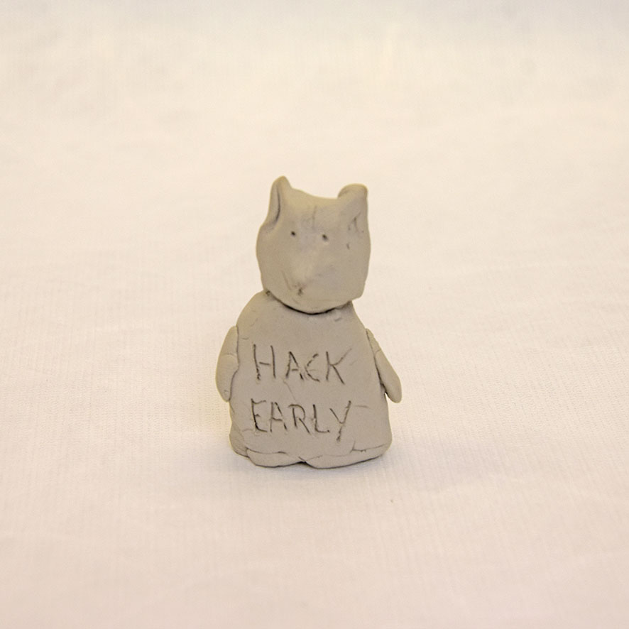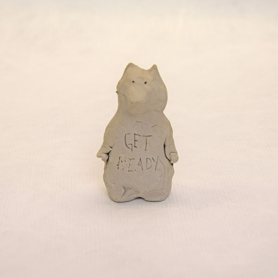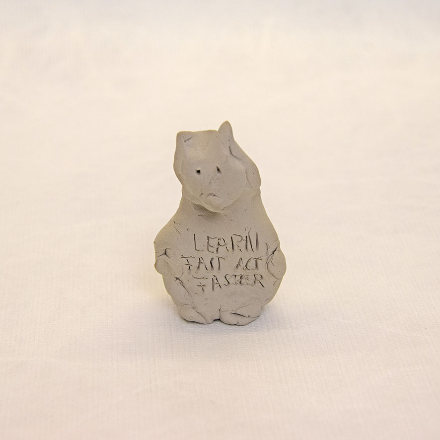 Timo Hinze, Die Kollegen (11), 2017, aus der Serie: Die Kollegen, geformter Ton, Einritzung, Objekt: 5,5 x 4,2 x 3 cm