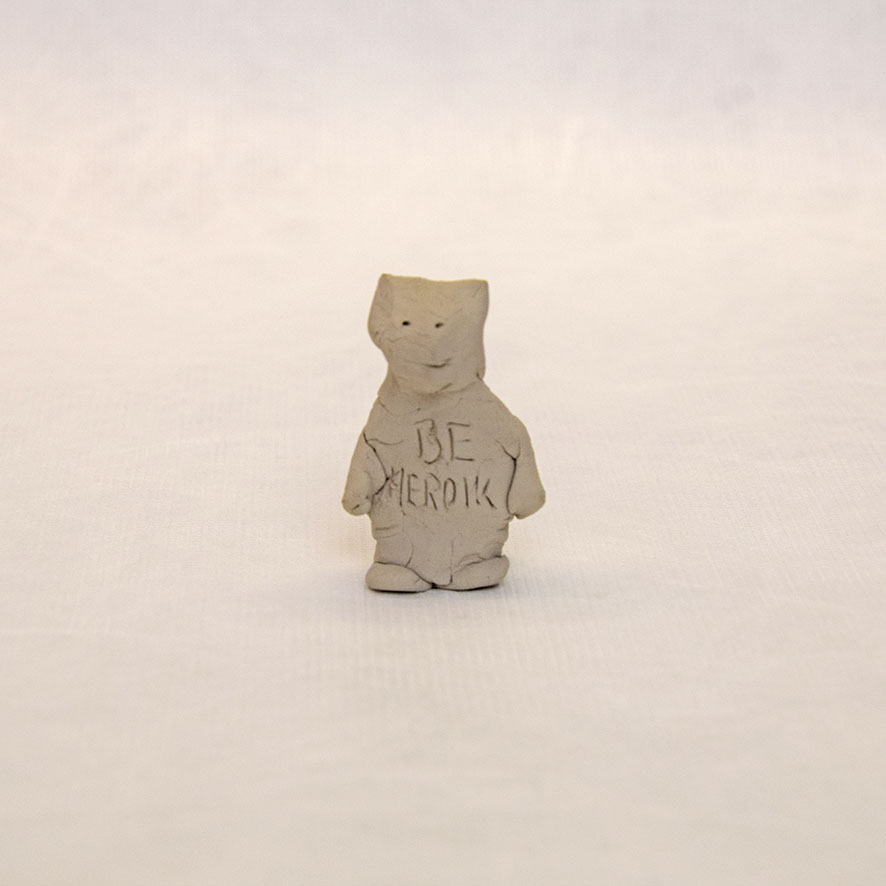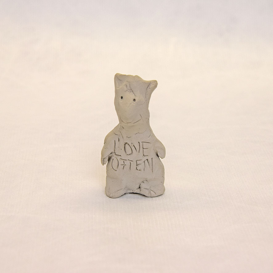 Timo Hinze, Die Kollegen (11), 2017, aus der Serie: Die Kollegen, geformter Ton, Einritzung, Objekt: 5,4 x 3,5 x 2,7 cm