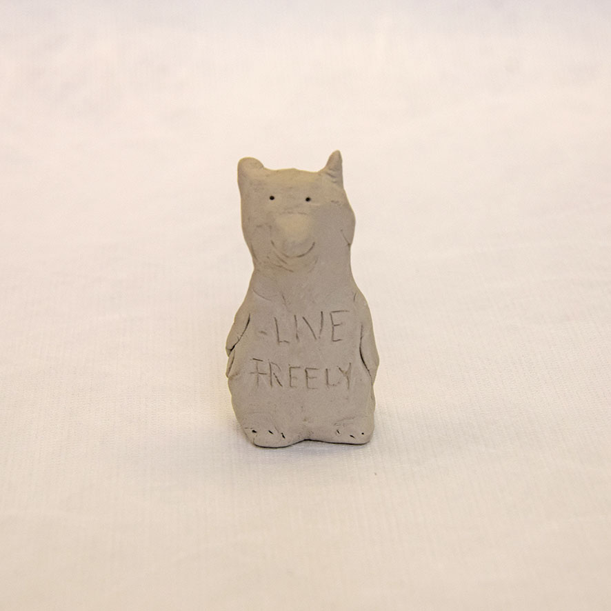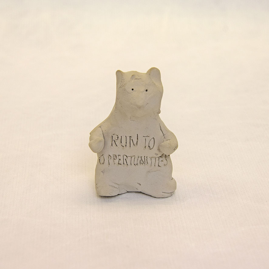 Timo Hinze, Die Kollegen (11), 2017, aus der Serie: Die Kollegen, geformter Ton, Einritzung, Objekt: 5,6 x 3,4 x 2,4 cm