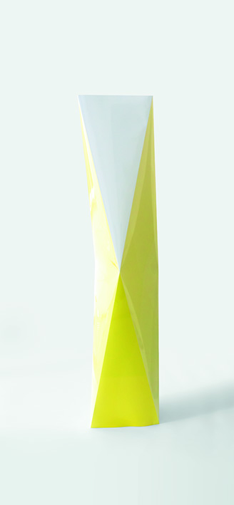 Stefanie Seufert, Just Yellow, 2016, aus der Serie: Towers, Option #2, Just Yellow, Atlas Grey, Dark Aubergine, Fotogramm auf PE-Papier, Objekt: 180 x 35 x 29 cm